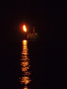 Les navires pétroliers arrivaient directement des USA à un grand bateau d'emmagasinement « FPSO » -une plateforme de stockage et dégazage d'hydrocarbures voisine de la méga tour « CPT »- et repartaient dans un ballet frénétiquement incessant de vaisseaux. La « CPT », nommée « BBLT » -Benguela, Belize, Lobito, Tomboco, homonymes de quatre villes angolaises- était constituée d'une tour de dégazage qui produisait une flamme gigantesque ne s'interrompant jamais. La structure mesure 512 mètres du fond marin à la pointe de la tour de forage.