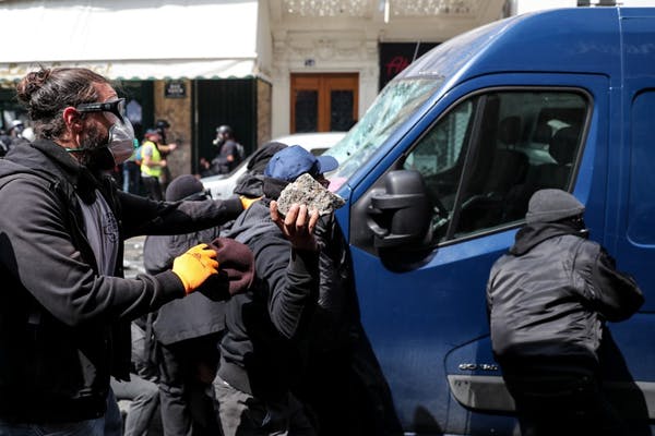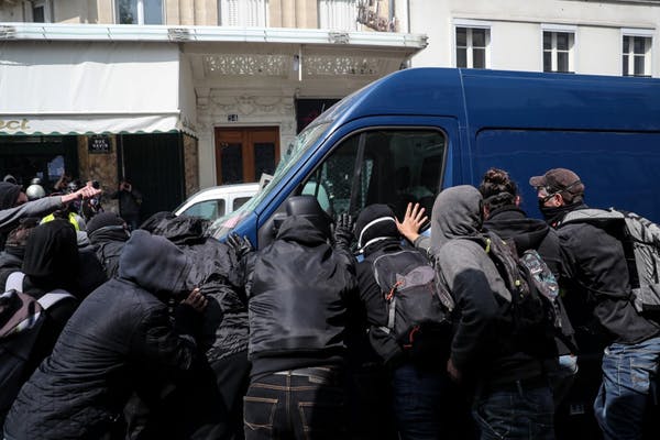 Un cortège de militants révolutionnaires habillés en noir susceptibles de recourir à l'action directe