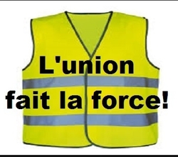 Les Gilets Jaunes, opposés au Système qui broie, spolie, dénature, détruit, sont de plus en plus dénigrés, diffamés, calomniés, malmenés... par le régime macron, comme par les merdias. Parmi eux, il y a des personnes qui souffrent de l'isolement, des retraités, des chômeurs, des célibataires, des divorcés, des veufs, ou des personnes handicapées socialement ou physiquement. Or en se retrouvant sur les ronds-points, par exemple, ils ont noué des contacts, découvert la solidarité et l'action de groupe, et ils vivent de plus en plus la force du collectif. Des meneurs se lèvent, les plus politisés partagent des idées, des causes, des engagements : Liberté, égalité, fraternité, en actes ! Seuls, isolés, c'est la désunion, la faiblesse, l'inefficacité. Mais l'union fait la force ! Couplée à de justes idées de changements, cette union vitalise la France qui sous la coupe de prédateurs en col blanc, perd son identité et ses atouts.