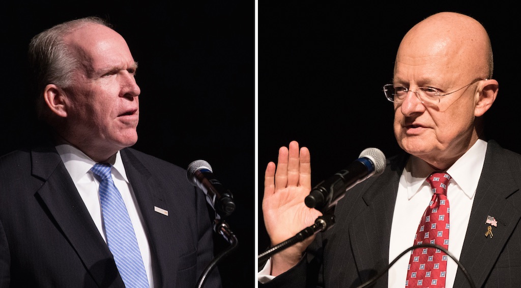 John Brennan, left, and James Clapper. (LBJ Library via Flickr)