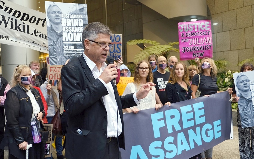 Vendredi dernier, John Shipton, le père de Julian Assange, Oscar Grenfell, candidat à l'élection du Parti socialiste pour l'égalité, l'avocat Greg Barns et d'autres intervenants ont pris la parole devant les manifestants à Sydney. Shipton a insisté pour que le gouvernement australien obtienne immédiatement la libération de l'éditeur, journaliste et citoyen australien de WikiLeaks.