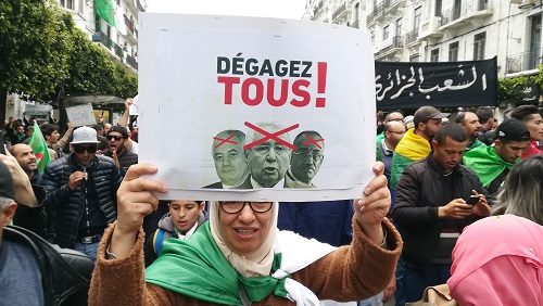 En Algérie, le peuple a soudainement dépassé des demandes sectorielles qui apparaissaient jusqu'ici pour contester, de manière coordonnée et massive dès le 22 février, le 5e mandat que voulait briguer le chef de l'État Abdelaziz Bouteflika [5]. Le soulèvement le plus important depuis l'indépendance en 1962 a été d'une telle intensité, que Bouteflika a dû remettre sa démission le mardi 2 avril, sous la pression de la rue et de l'armée.
