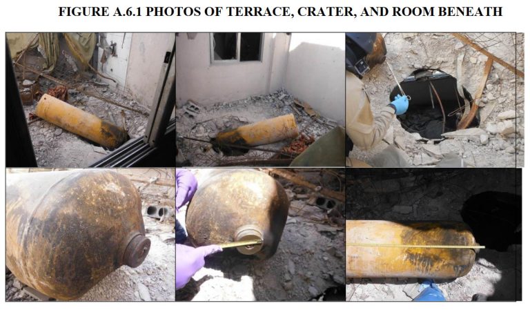 L'Organisation pour l'interdiction des armes chimiques (OIAC), qui a envoyé une mission d'établissement des faits sur place pour enquêter sur l'affaire, a procédé à une analyse technique détaillée de l'impact et des dommages. Mais les résultats de cette évaluation technique n'ont pas été pris en compte dans le rapport final (pdf).
