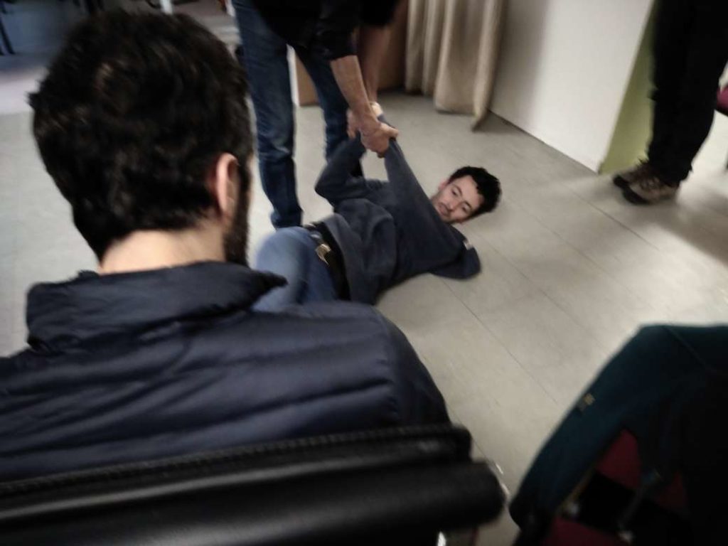 Dans un local associatif Parisien, les cris fusent et des personnes sont traînées au sol « Viens là espèce de sale gauchiste. On va devoir lui péter le bras à ce petit enculé ». Deux personnes tirent une femme qui, hilare au sol, trahit la scène : « Je vais te péter le nez, tu vas moins rigoler » répond un de ses assaillants. On s'y croirait.