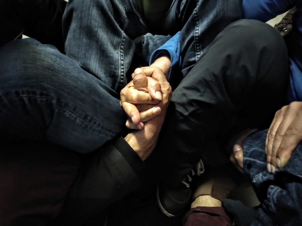 Il explique que résister en se débattant peut amener à de graves problèmes « Tu te débats, c'est matraque, hôpital, ennuis judiciaires ». L'audience, visiblement conquise par la désobéissance civile non violente en redemande. Rémi apprend alors les rudiments de la tortue au groupe, une technique de désobéissance qui a été utilisé pour bloquer la défense par Extinction Rebellion le 19 Avril. Il s'agit de se disposer en cercle, assis au sol et s'entremêler les bras et jambes afin d'être indélogeable par la Police. Au bout de 5 minutes, certains se plaignent déjà de douleurs, mais en situation de terrains, c'est plusieurs heures que les militants peuvent passer dans cette situation : « À la défense, ils sont restés toute la journée comme ça, dans ces cas là, on utilise un safe word si on veut arrêter, si on a trop mal ou que ce n'est plus possible psychologiquement » explique le formateur. Car, souvent, la douleur devient insupportable.