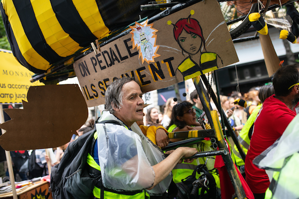 S'ils n'avaient pas sortis, pour l'occasion, les camions ni les ballons, la CGT comme Solidaires ont répondu eux aussi présents. « Il ne peut y avoir de justice sociale sans justice écologique, déclaraient les syndicalistes en chasuble. « Les 100 plus grandes compagnies mondiales sont responsables de 70 % des émissions de gaz à effet de serre, rappelaient-ils dans leur tract. 1 % de la population la plus riche a une empreinte carbone 40 fois supérieure au 10 % les plus pauvres ».