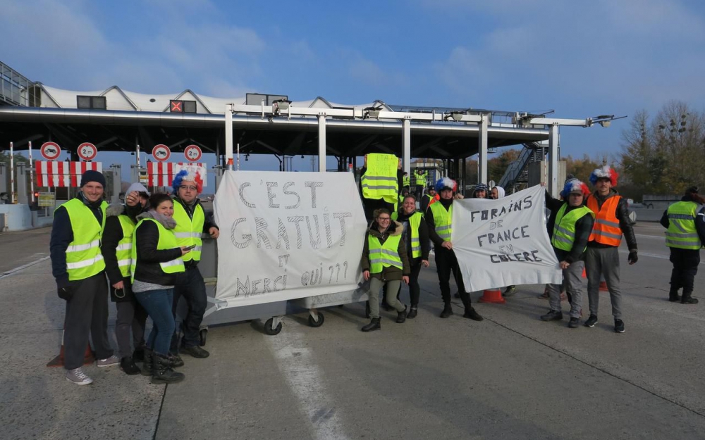 A third example is the "péage" actions, where they promote the idea of free highways: