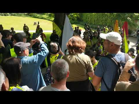 «Nous avons les syndicats habituels, a-t-elle dit, y compris la Confédération générale du travail (CGT) et la Force ouvrière (FO), mais je n'y crois pas. Ils ne sont pas nécessairement pour nous. Ils ne sont pas représentatifs et ne se battent pas pour nous». La réponse du gouvernement Macron aux protestations a montré que «déjà aujourd'hui nous sommes dans une dictature. Il n'y a pas eu de mouvement de protestation aussi brutalement réprimé que celui des gilets jaunes. Ils nous envoient tout: Gaz lacrymogènes, balles en caoutchouc, grenades éclair, canon à eau. Cela dérange le gouvernement que nous soyons ici, que nous exprimions un mécontentement social tout à fait légitime d'une manière pacifique.»