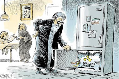 Une version antérieure d'une légende allant avec cette caricature attribuait à tort une distinction au programme nucléaire de l'Iran. L'Iran n'a pas produit d'uranium hautement enrichi.