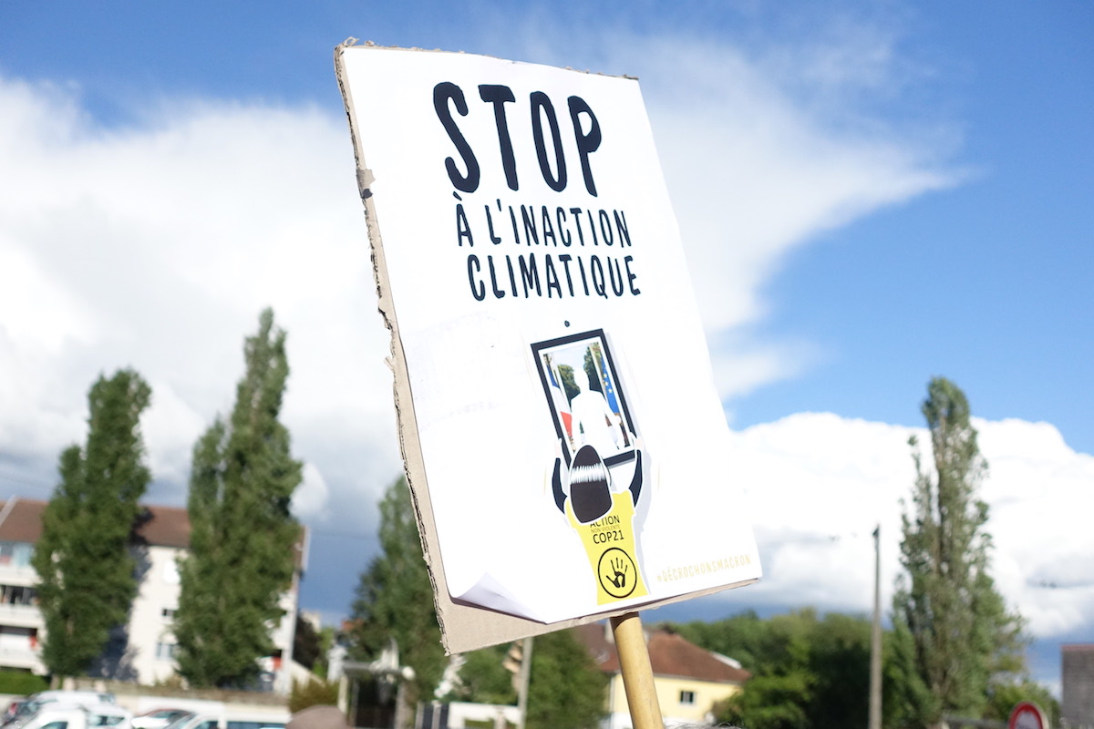 Le mardi 28 mai 2019, à Bourg-en-Bresse, se déroulait le tout premier procès des « décrochages » de portraits d'Emmanuel Macron. Six activistes d'ANV-COP21 Villefranche-Beaujolais-Saône comparaissaient, poursuivis par l'État pour « vol en réunion et par ruse ». Le samedi 2 mars 2019, les prévenus avaient « réquisitionné » une photo du président de la République dans la mairie de Jassans-Riottier (Ain). Ils encourent jusqu'à dix ans de prison et 150.000 euros d'amende. Cette action de désobéissance civile non violente s'inscrit dans la campagne « Décrochons Macron » au cours de laquelle 55 portraits ont été décrochés par des citoyens à travers la France. Les murs, vides des portraits présidentiels qu'ils accueillaient, symbolisent pour les activistes l'inaction climatique du gouvernement.