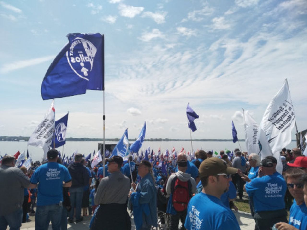 Le premier ministre du Québec, François Legault, a dénoncé à plusieurs reprises les ouvriers de l'usine métallurgique d'ABI en lock-out pour leurs «salaires élevés» et leurs revendications «excessives». En fait, ils s'opposent à la tentative de la direction d'imposer des réductions de pensions et d'autres concessions. La photo ci-dessus montre une partie d'une manifestation organisée le 25 mai à Trois-Rivières pour soutenir les travailleurs d'ABI.Cette offensive anti-travailleurs a commencé fin mars, lorsque Legault a abandonné la supposée position traditionnelle de «neutralité» gouvernementale dans les conflits du travail dans le secteur privé, se rangeant publiquement aux côtés de l'Aluminerie de Bécancour (ABI) dans ses demandes de concessions contractuelles. Une usine conjointe entre les géants transnationaux de l'aluminium et des mines Alcoa et Rio Tinto-Alcan, ABI a mis en lock-out 1030 employés de production et de bureau depuis 18 mois, dans le but de réduire les retraites, les droits d'ancienneté et d'imposer une accélération de la cadence de travail.