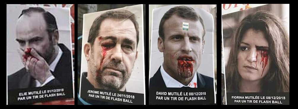 Tous les coups furent permis sauf d'aller jusqu'à la mise à mort du manifestant. Sur ordre du ministère de l'intérieur, nous assistâmes aux gazages massifs de foules nassées, aux matraquages de citoyens et citoyennes de 7 à 77 ans et bien sur à l'utilisation massive et systématique, en particulier par les nervis de la BAC, des fameux LBD40 et autres grenades de désencerclements gravement mutilants.