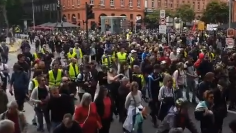 «On avançait joyeusement, on chantait, et d'un coup des dizaines de policiers se sont rués sur nous, arrachant les banderoles et matraquant les manifestants en tête du cortège», raconte Bastien, les yeux rougis. Le reporter web de RT France sur place a filmé de près différentes scènes qui témoignent de l'ambiance tendue qui règne sur place.