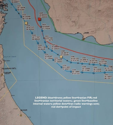 La distance entre Palmdale en Californie, où le drone Global Hawk a été construit, et le port de Bandar Abbas dans le détroit d'Ormuz est de 13 134 kilomètres ou 8 161 miles. Sachant cela, il semble un peu ridicule de discuter de la question de savoir si le drone américain se trouvait à un mille à l'extérieur ou à un mille à l'intérieur de l'espace aérien iranien.