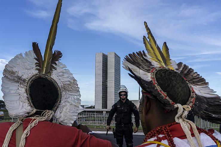 Photo de une : Un rassemblement des populations autochtones a réuni des milliers de personnes fin avril dans la capitale Brasília pour protester contre les attaques dont elles sont victimes depuis l'arrivée au pouvoir de Bolsonaro. CC Apib Comunicação.