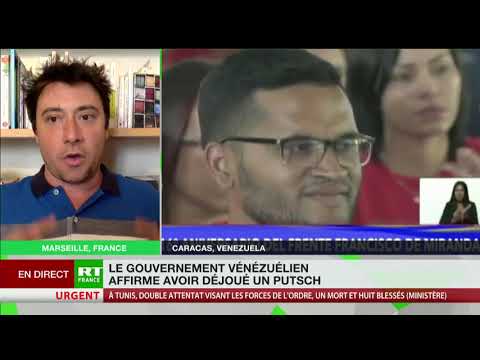 Entretien du 27/6/2019 avec Romain Migus, journaliste, spécialiste du Venezuela. Pour RT France, il livre son analyse au sujet de l'affirmation du gouvernement vénézuélien d'avoir déjoué un putsch. Une tentative de «coup d'Etat» impliquant selon Maduro des militaires actifs et en retraite, ainsi qu'un ancien chef du renseignement.
