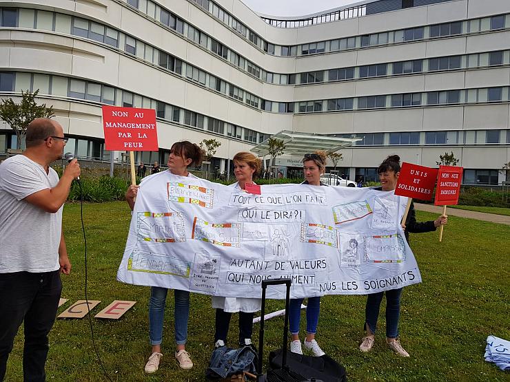 C'est donc un directeur qui n'est pas sur place qui a décidé seul de sanctionner les quatre soignantes. Le 25 juin, Sophie et ses collègues ont tenté de rencontrer les membres de la direction du Groupement hospitalier à Lorient, qui se réunissaient pour un Comité technique d'établissement (CTE). Ce fut peine perdue. « Le directeur est parti, il n'a pas voulu nous voir, dit-elle. Mais j'ai dit à la direction, venez voir comment nous travaillons dans les Ehpad. Il faut venir, il faut mettre une blouse. La direction se permet de nous sanctionner alors qu'elle ne sait pas ce que nous faisons. Nous sommes gérés par des personnes qui ne savent pas ce qu'est notre travail, mais ils sont au-dessus de nous, ils ont le pouvoir de nous punir ».