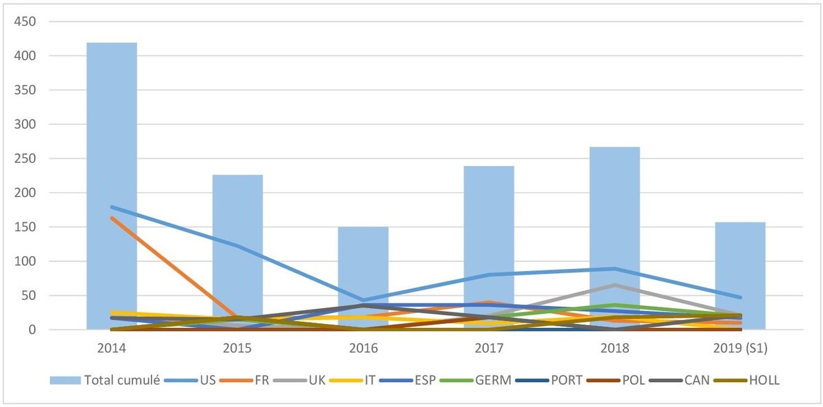 Présence navale des navires de l'OTAN en mer Noire, 2014-2019 (S1), en jours cumulés
