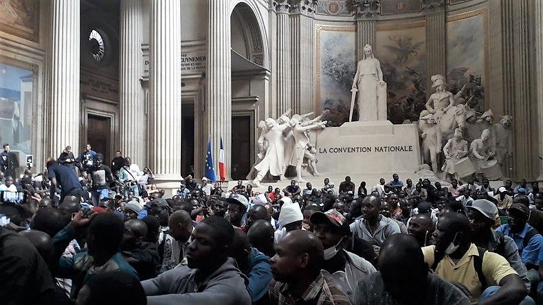 Hier après-midi, 700 "Gilets Noirs", sans-papiers et militants du collectif La Chapelle Debout ont occupéle Panthéon à Paris en scandant "Gilets Noirs" pour réclamer leur régularisation. Leur action pacifique a fait l'objet d'une répression féroce. La police a fait évacuer le Panthéon, puis nassé et chargé les manifestants à l'arrière du bâtiment où sont enterrées de nombreuses figures célèbres, dont les penseurs des Lumières Voltaire et Jean-Jacques Rousseau, le romancier Émile Zola, et le socialiste Jean Jaurès.