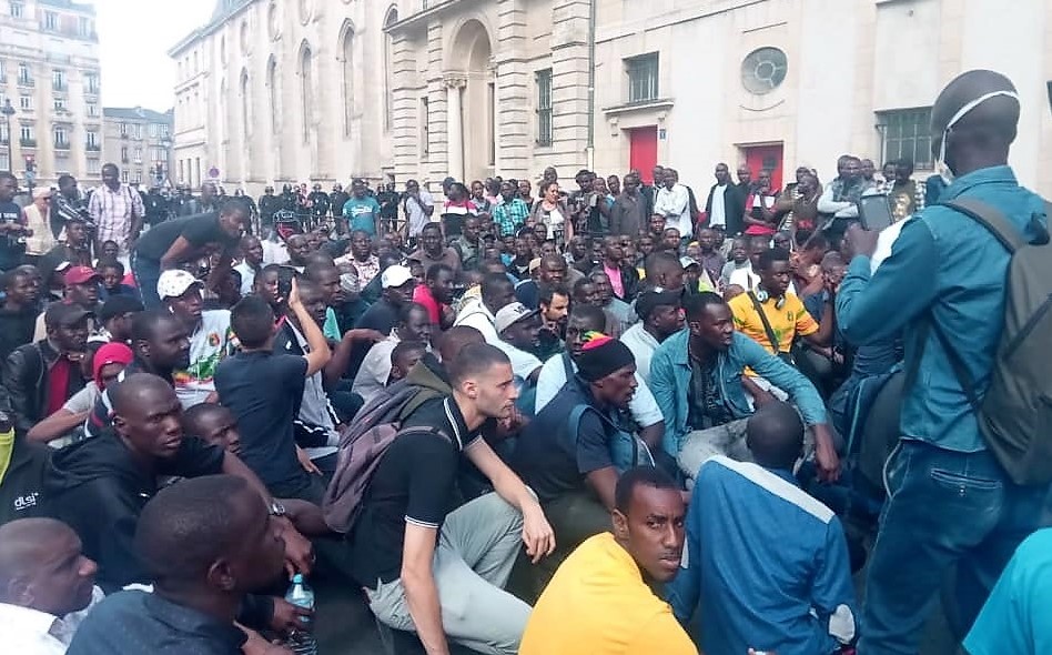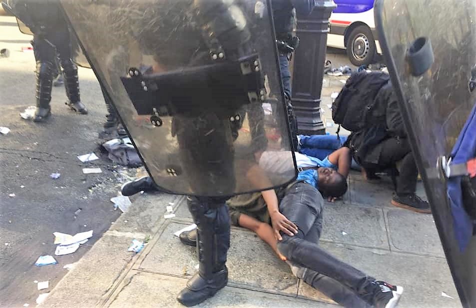 During the police crackdown at the Pantheon [Credit: La Chapelle Debout]Ils ont pointé les conditions sociales intolérables dans lesquelles vivent des masses de réfugiés et de travailleurs pauvres en région parisienne: "On occupe, parce qu'il y a 200.000 logements vides à Paris, et que les nôtres dorment sous des échangeurs du périphérique, qu'hier la mairie a grillagé les rues du campement Avenue Wilson à Saint Denis."