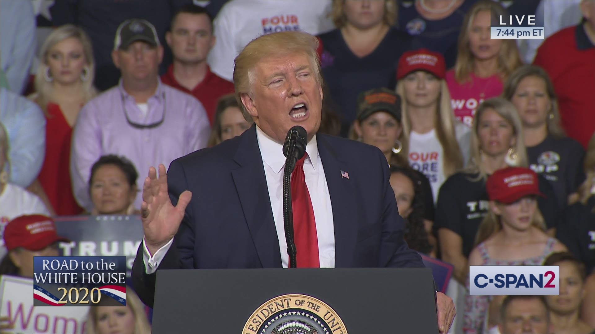 Donald Trump s'adressant au rassemblement de mercredi à Greenville en Caroline du Nord (source : C-Span)Faisant référence à Omar, Alexandria Ocasio-Cortez, Rashida Tlaib et Ayanna Pressley, Trump a dénoncé les «extrémistes de gauche qui rejettent tout ce que notre pays défend». Trump a attaqué les représentantes comme des «socialistes» qui «détestent notre pays» et «veulent démolir notre constitution, affaiblir notre armée et éliminer les valeurs sur lesquelles ce pays magnifique a été construit». L'attaque était un appel à peine voilé à la violence.