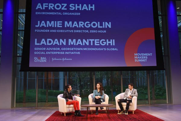 « Citoyens du monde - Artisans de mouvements. Sur cette photo : (De gauche à droite) Ladan Manteghi, Jamie Margolin et Afroz Shah s'expriment sur scène lors de Global Citizen - Movement Makers au Times Center le 25 septembre 2018, à New York City. » Source : Noam Galai/Getty Images North America