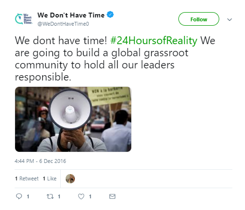 Nous n'avons pas le temps ! #24HeuresDeRealite Nous allons construire un communauté mondiale de militants pour mettre nos leaders face à leurs responsabilités.