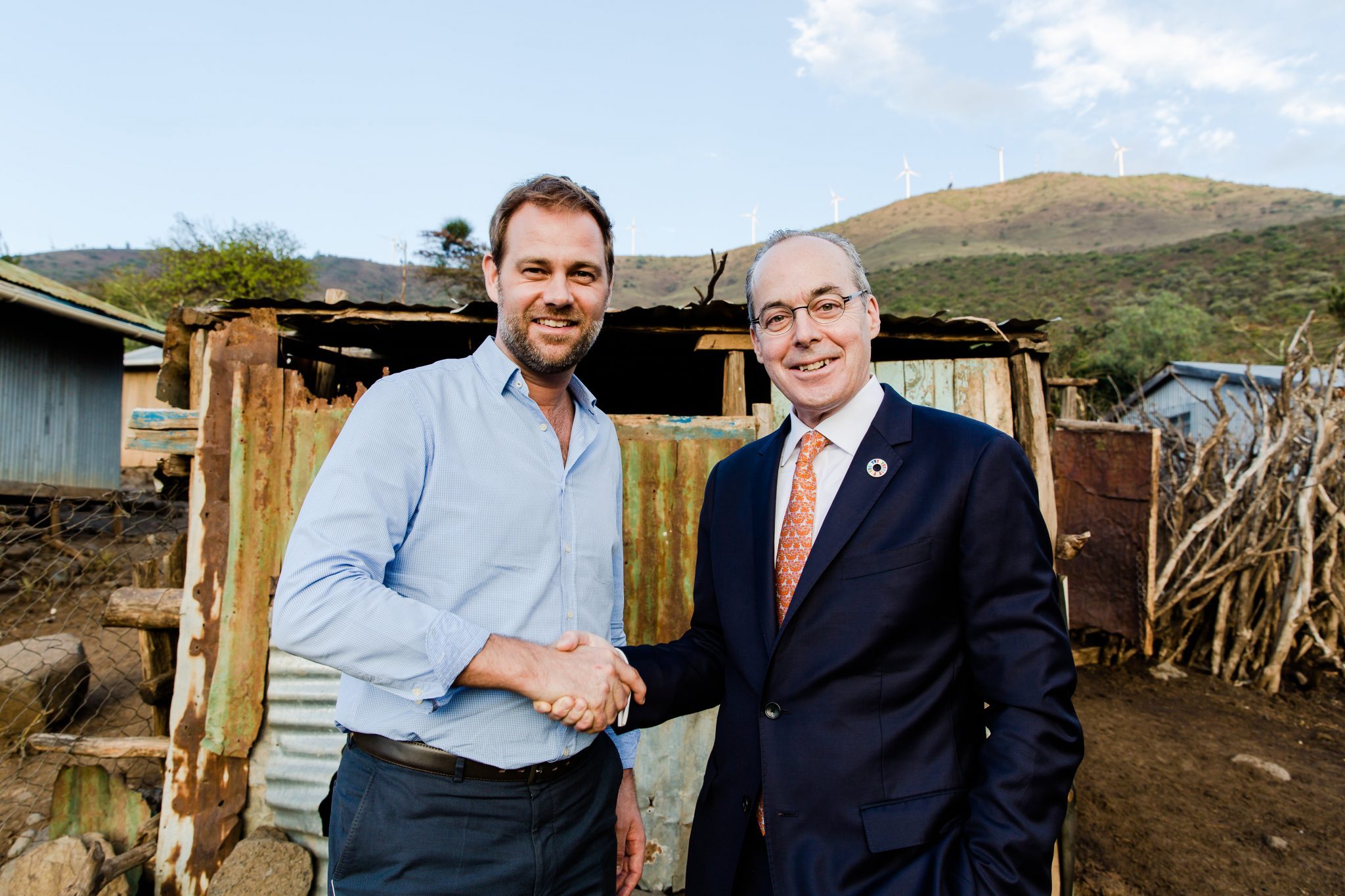 15 mars 2018 : M-KOPA obtient 100 millions de shillings kényans de CDC, FinDev Canada : Jesse Moore, co-fondateur et PDG de M-KOPA, et Paul Lamontagne, directeur général de FinDev Canada, lors d'une visite à Ngong.