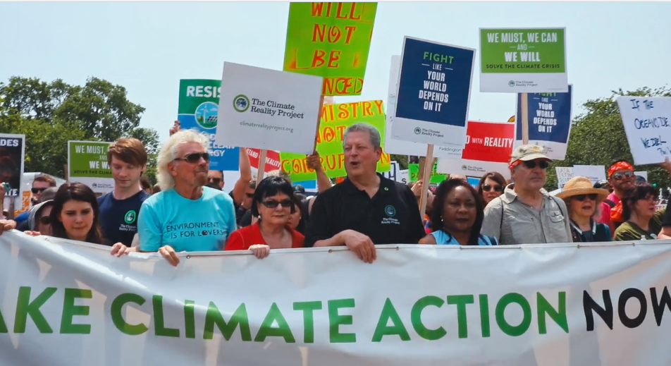 La marche du climat de Washington D.C, 2017 : « L'équipe B (B-Team), dirigée par Sir Richard Branson, Sharan Burrow et l'ancien vice-président Al Gore, s'est jointe à des centaines de milliers de travailleurs, scientifiques, chefs d'entreprise, étudiants, parents, grands-parents, enfants et groupes autochtones qui demandent que l'administration américaine agisse contre le changement climatique ». (Source)