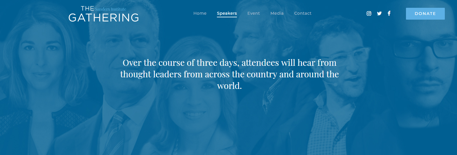 Récemment, un nouvel institut a été lancé en partenariat avec Our Revolution : L'Institut Sanders (« Notre mission : revitaliser la démocratie «). La conférence inaugurale (The Sanders Institute Gathering, le rassemblement de l'Institut Sanders) a eu lieu à Burlington, dans le Vermont (États-Unis) du 29 novembre au 1er décembre 2018. L'événement sur invitation comprenait la crème de la crème de la crème de l'establishment politique libéral, dont Bernie Sanders qui a prononcé le discours d'ouverture, Naomi Klein, membre du conseil d'administration de 350.org, le fondateur de l'organisation 350.org Bill McKibben (boursier de l'Institut Sanders), qui a parlé du New Green Deal, Jeffrey Sachs (membre de l'Institut Sanders), Cornel West (membre de l'Institut Sanders), le maire de New York Bill de Blasio, Nina Turner (sénatrice de l'Ohio, présidente de Our Revolution), Ben Cohen (de Ben & Jerry's) et la représentante au Congrès des USA Tulsi Gabbard (membre de l'Institut Sanders) (Liste complète).