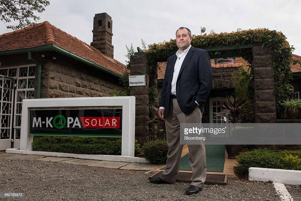 Chad Larson, co-fondateur et directeur financier de M-Kopa Solar, pose pour une photo au siège de M-Kopa Solar à Nairobi, Kenya, le mercredi 22 juillet 2015. Les clients acceptent de payer le panneau solaire par versements réguliers dont M-Kopa, un fournisseur de systèmes d'éclairage solaire basé à Nairobi, surveille ensuite les paiements, qui sont effectués via un service de transfert d'argent par téléphone mobile. Photographe : Waldo Swiegers/Bloomberg via Getty Images
