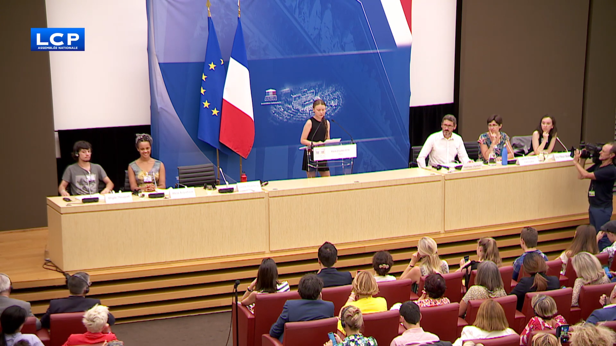 Mardi 23 juillet, rue de l'université à Paris, de fines gouttes de sueur perlaient sur les tempes et les chemises collaient à la peau. Trente-huit degrés à l'ombre, et le thermomètre explosait au soleil. Dans le cagnard, une soixantaine de journalistes faisaient le pied de grue sur le parvis de l'immeuble Jacques Chaban-Delmas. Ils attendaient Greta Thunberg, militante suédoise et « étincelle du mouvement des jeunes pour le climat », selon les mots du député de Maine-et-Loire Matthieu Orphelin. L'adolescente de 16 ans, devenue l'égérie médiatique de la lutte contre le changement climatique, était invitée à l'Assemblée nationale par 162 députés membres du collectif transpartisan « Accélérons la transition écologique et solidaire ».