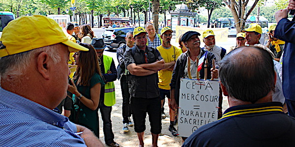 Les deux principaux syndicats agricoles sont sur le pont, mais avec des modes d'action différents, pour dénoncer le CETA. La Fnsea a choisi des actions ciblées en province, devant des préfectures, à des dates différentes. Et sans doute aussi un lobbying peu visible mais réel auprès des élus. Le tout à partir d'un slogan identifié depuis plusieurs semaines désormais, « n'importons pas l'agriculture dont nous ne voulons pas ».