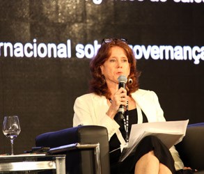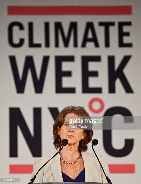 Kelly Rigg, directrice générale de TckTckTck, prend la parole lors de la cérémonie d'ouverture de la Climate Week NYC à New York, le 20 septembre 2010 (Photo de Ramin Talaie/Corbis via Getty Images)