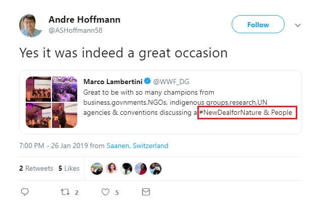 24 janvier 2019, Twitter, New Deal For Nature, Global Shapers, Forum économique mondial, Davos