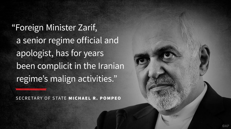 Les raisons invoquées pour justifier l'excommunication la sanction contre le ministre iranien des Affaires étrangères sont ridicules. Un communiqué de presse de Pompeo dit :