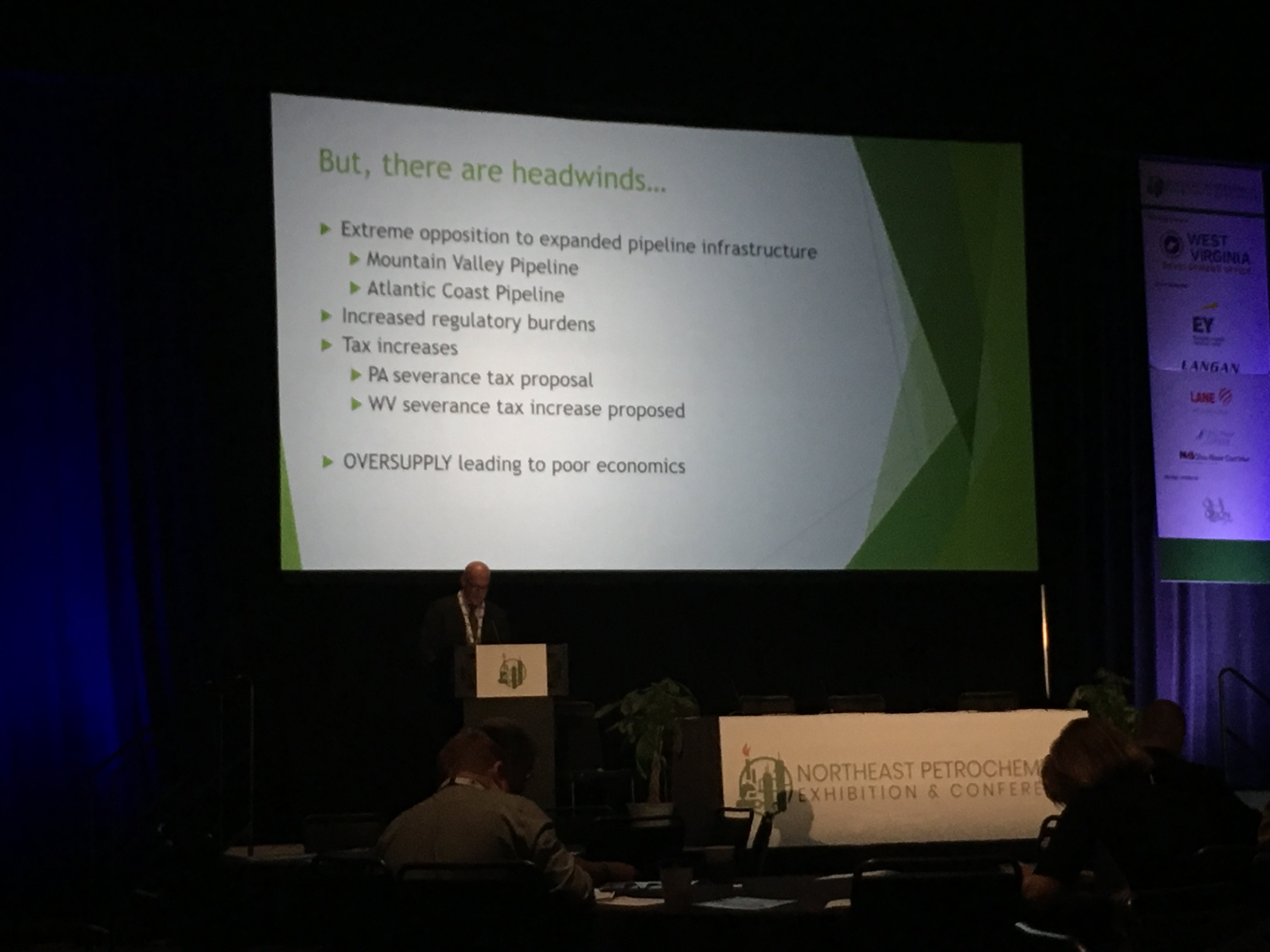 M. Schlotterbeck a dit qu'il y avait une raison pour laquelle il avait fait sa présentation à l'industrie pétrochimique à Pittsburgh, où l'industrie prévoit une grande frénésie de construction pour construire des usines de plastique et de produits chimiques, en grande partie parce que les prix du gaz ont chuté si fortement. En décembre, le ministère de l'Énergie a cité l'« énorme ressource à faible coût des schistes de Marcellus et d'Utica » lorsqu'il a annoncé la publication d'un rapport vantant les avantages de la construction de nouvelles infrastructures pétrochimiques dans les Appalaches.