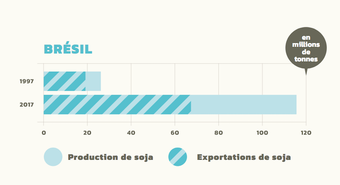 En ce qui concerne spécifiquement la forêt amazonienne, la France (et l'Europe) disposent d'un levier efficace pour freiner sa dévastation : arrêter l'importation de soja transgénique du Brésil. L'expansion de cette culture est en effet un des principaux moteurs de la déforestation, le lobby agro-industriel brésilien trouvant là une des ses principales sources de profit. Et comme l'a souligné une récente étude de l'Académie d'agriculture, la production de soja au Brésil n'a cessé de progresser depuis l'an 2000, atteignant 120 millions de tonnes en 2018-2019. Si la Chine en est le plus gros importateur, l'Europe compte aussi pour 20 % des importations. Un rapport de Greenpeace sur le soja note que l'Europe en importe 33 millions de tonnes par an depuis l'Amérique latine, destinées à l'alimentation animale, notamment de volailles.