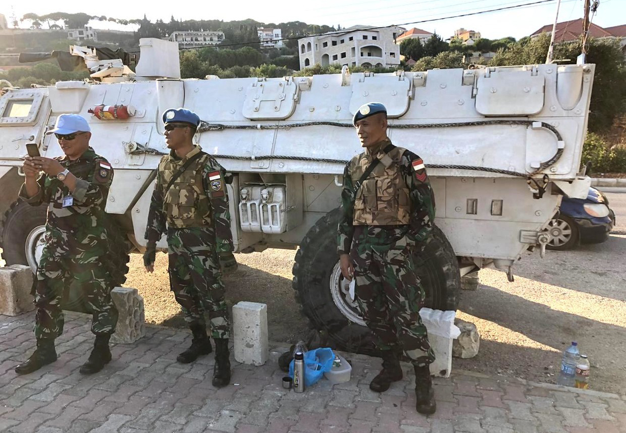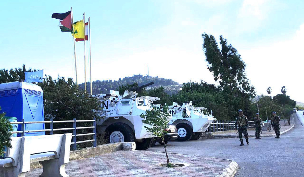 Devant l'horrible nouvelle barrière israélienne, trois drapeaux flottent au vent - ceux de la Palestine, du Liban et du Hezbollah. A côté d'eux, trois véhicules blindés de la FINUL sont stationnés. Des soldats indonésiens se reposent, prennent des selfies.