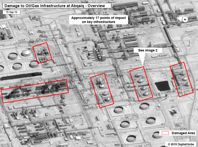 « Le consultant Rapidan Energy Group a déclaré que les images de l'installation d'Abqaiq après l'attaque montraient qu'environ cinq de ses tours de stabilisation semblaient avoir été détruites et qu'il faudrait des mois pour les reconstruire, ce qui pourrait réduire la production pendant une période prolongée.