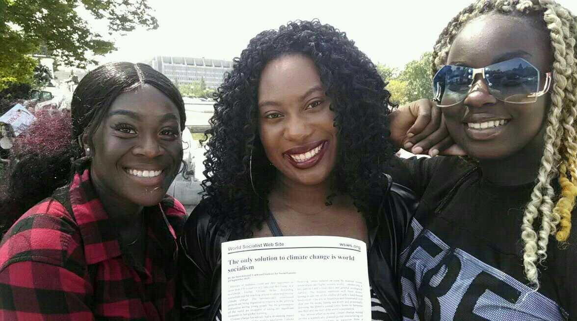 Abby, Bria and Assanatou in Washington, D.C.Abby, Bria et Assanatou sont trois étudiantes du Frederick Community College du centre du Maryland. Ils ont dit au WSWS qu'ils avaient entendu les manifestants à l'extérieur alors qu'ils visitaient un musée dans la ville. «Il ne faut pas s'étonner que les jeunes soient en train de manifester», a dit Abby. «Les jeunes sont conscients de la situation à laquelle ils sont confrontés. Le destin de la planète est notre avenir.»