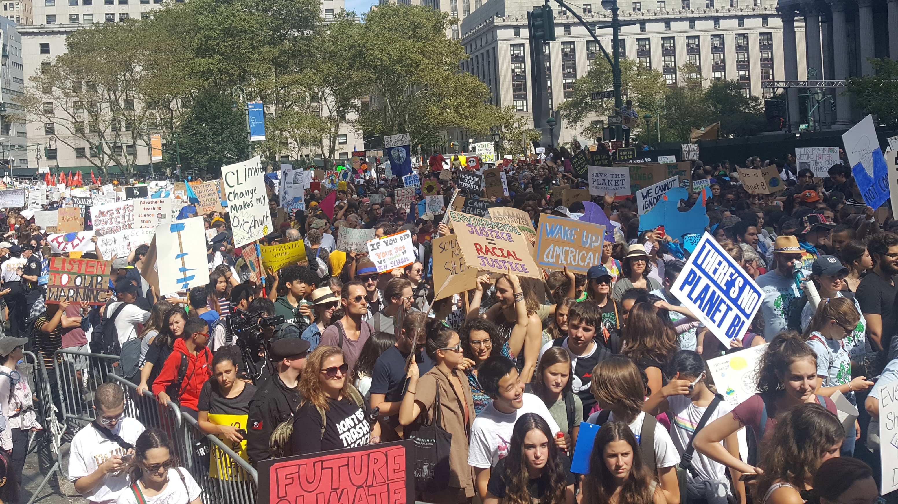 Organizers estimate 250,000 marched against climate change in New York City.En tant qu'immigrant, dit Jose, «j'ai l'impression d'avoir fui les problèmes qu'ils ont créés et maintenant, ces mêmes politiciens font de moi un bouc émissaire pour ces mêmes problèmes, alors je suis ici pour essayer d'écouter et apprendre. Encore une chose, les gens parlent de différents problèmes, de l'itinérance, de la pauvreté, du changement climatique, etc. Je pense que la seule façon de résoudre ces problèmes est de nous unir.»