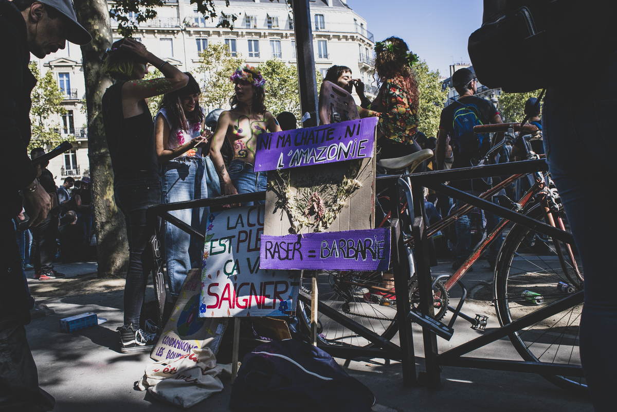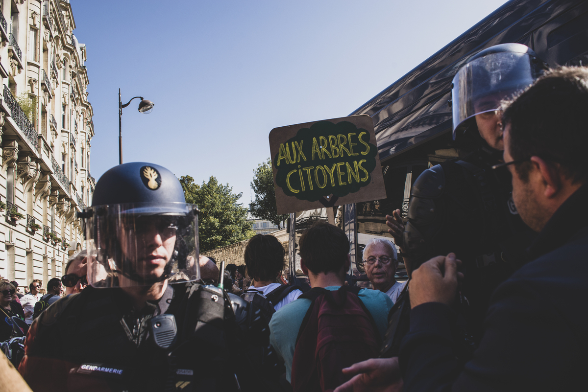 « Ça fait trente ans que je fais de l'écologie et c'est une catastrophe, s'insurge Vincent. La marche devait être non violente. Je ne voudrais pas faire d'amalgame mais ceux en noir n'ont pas respecté ça. Je suis d'accord pour qu'il existe différents modes d'action mais pas pour qu'ils se mélangent. Là, ça brouille le message et ça gâche l'énergie positive des gens venus manifester pacifiquement. » À côté de lui, Didier, Gilet jaune, se hérisse : « La violence, c'est la passivité face à la violence du gouvernement, qui permet la perpétuation de cette violence. » « C'est vrai que les attitudes passives ne donnent aucun résultat, se calme Vincent. Ce sont de vraies questions, qui heurtent mes valeurs. À quoi ça sert de manifester si ça ne sert à rien ? La dernière victoire que les écolos ont obtenue, c'est l'abandon du projet d'aéroport de Notre-Dame-des-Landes, parce que des gens déterminés ont défendu leur lieu de vie. Tout ça, c'est du rapport de force. Mais je continue à penser que casser du bien public est contre-productif. »