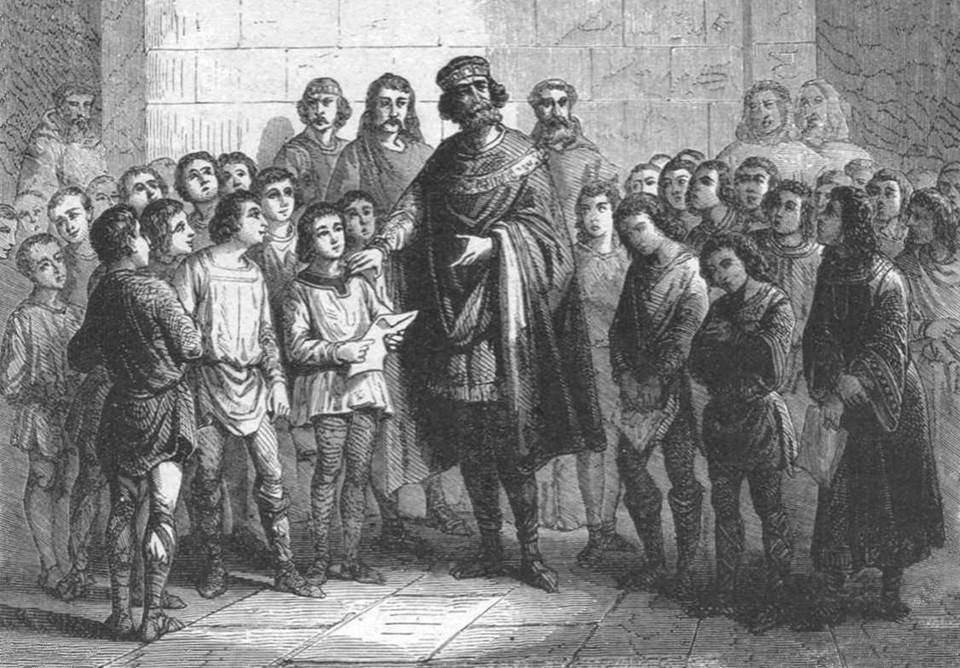 Cette histoire se fixait dans nos mémoires enfantines par des contes qui frisaient la mythologie pure et simple : par exemple Charlemengne devenu un empereur français metttant d'un côté les bons et les mauvais élèves. Récompensant ces derniers qui comme par hasard s'avéraient être les plus pauvres.