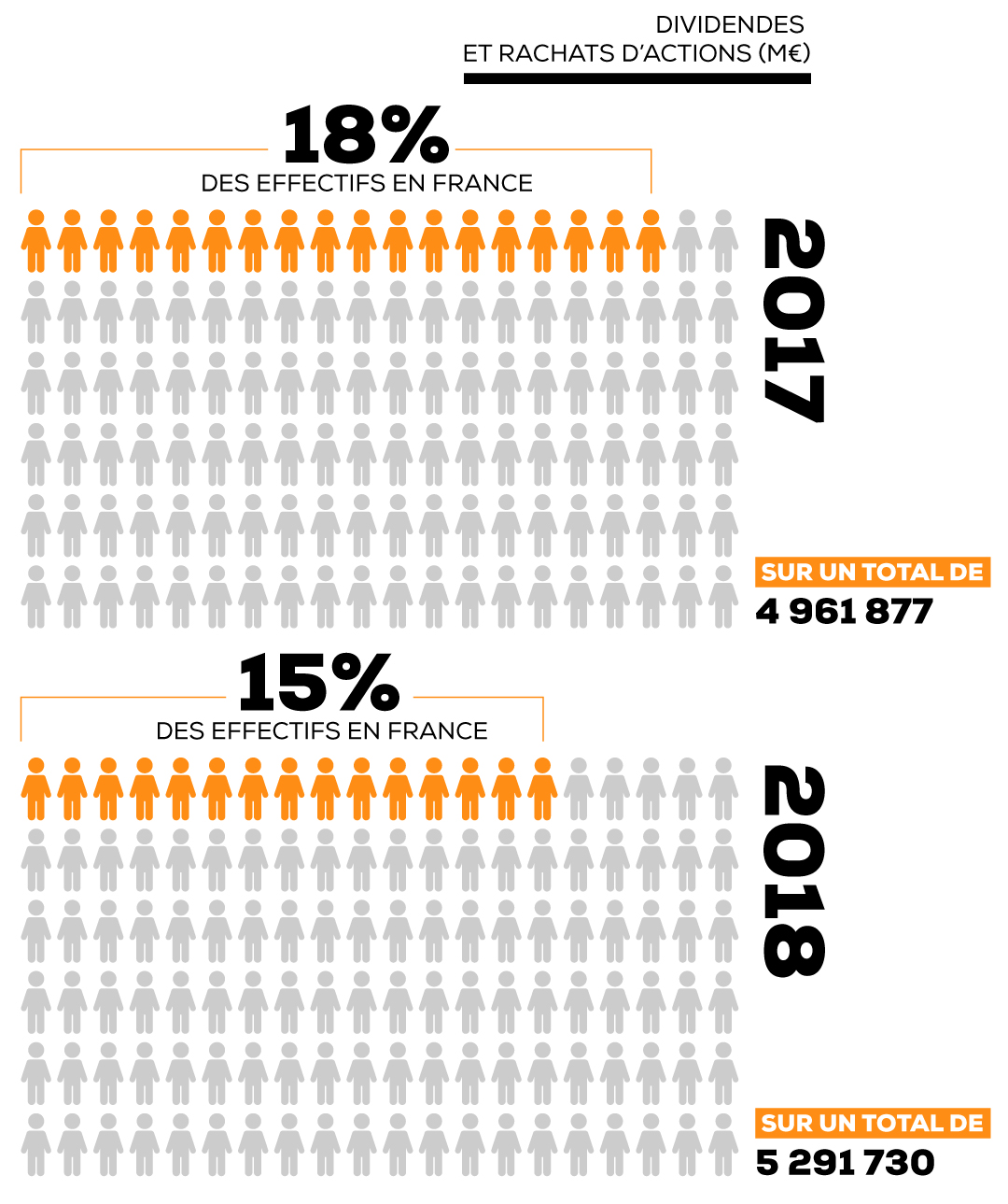 [1] Six firmes ont redistribué aux marchés financiers davantage que leurs profits à la fois en 2017 et en 2018 : Capgemini, Carrefour, Engie, Sodexo, TechnipFMC et Veolia.