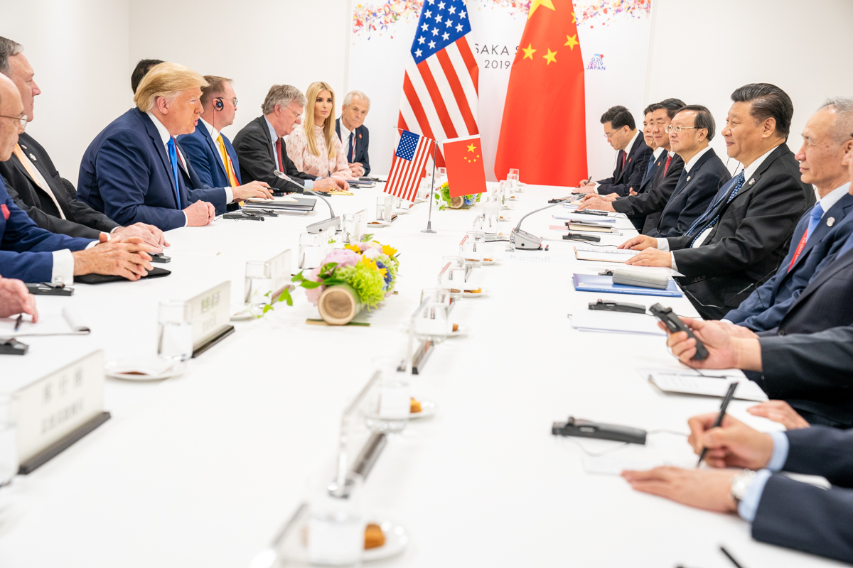M. Trump et l'équipe américaine rencontrent Xi Jinping et la délégation chinoise, le 29 juin 2019, au G-20 à Osaka. (Maison Blanche/Shealah Craighead)