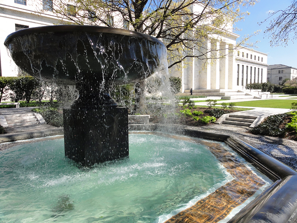 Eccles Federal Reserve Board Building, Washington, D.C. (Ron Dicker, CC BY-SA 4.0, via Wikimedia Commons) [L'édifice Marriner S. Eccles du Conseil de la Réserve Fédérale abrite les principaux bureaux du Conseil des gouverneurs du système fédéral de réserve, NdT]