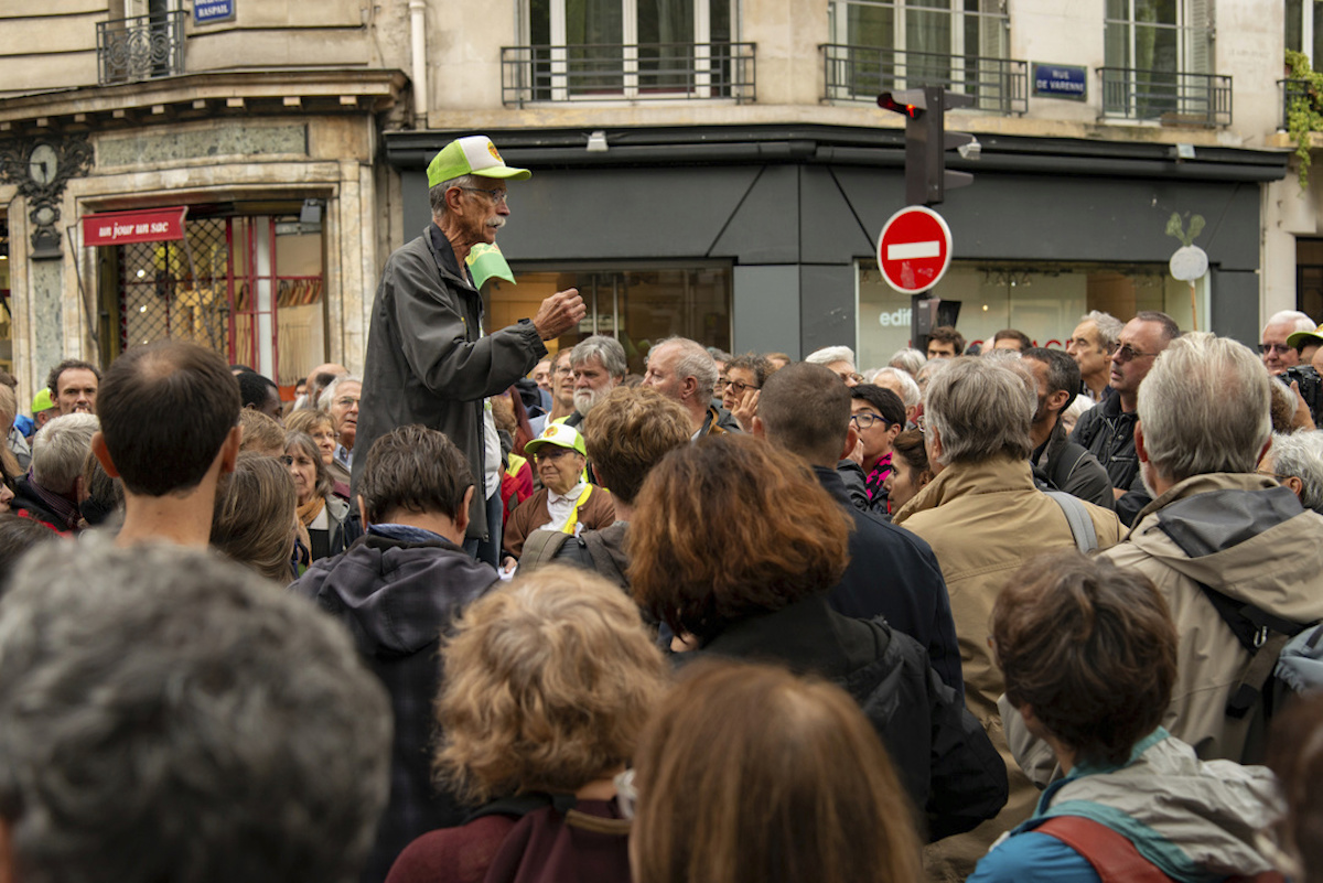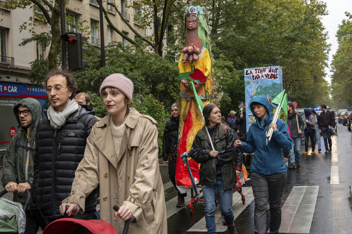 Dans le cortège, on rencontre des personnes venues des quatre coins de la France. Chacun amène avec lui ses luttes et son grand projet inutile. Gisèle vient de Savoie et se bat contre la ligne à grande vitesse Lyon Turin. Francis et Agnès sont originaires de Picardie et se mobilisent contre la ferme des mille vaches. Ils sont descendus à Paris avec leur drapeau Novissen. Manu habite l'Ariège et manifeste contre la mine de Salau. Régis vit à Orléans et a bataillé contre le projet d'un village de marque Décathlon.
