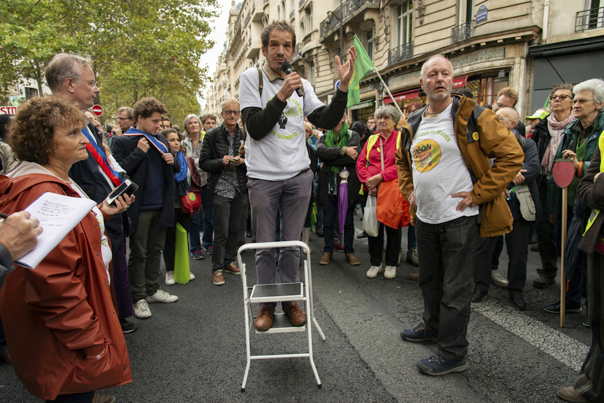 Dominique, elle, vient directement du Vexin où elle se mobilise contre des projets de cimenteries depuis 1995. « La lutte à Gonesse nous a donné de la force et des contacts. Elle nous a porté dans son orbite », souligne-t-elle. Avec ces myriades de combats, le décalage entre les promesses du gouvernement et la réalité palpable sur le terrain n'a jamais été aussi grande. Rien qu'en Île-de-France, 2000 hectares de terres agricoles disparaissent chaque année. « Comment Emmanuel Macron peut-il dire qu'il va arrêter l'artificialisation des terres et ne rien faire contre tous ces projets ? C'est de la pure démagogie », dénonce Isabelle, venue spécialement des Yvelines pour la marche.