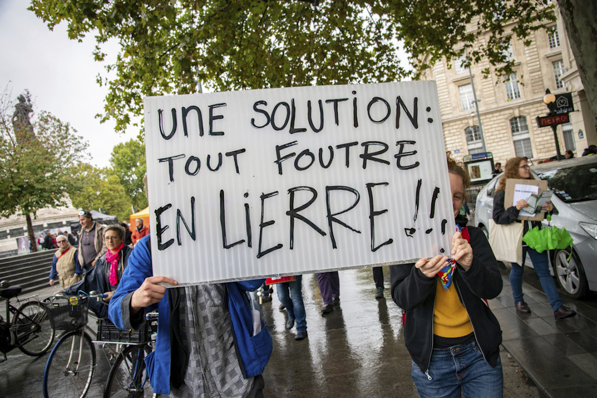 La marche contre EuropaCity samedi 5 octobre à Paris aura été à l'image de la météo. Une pluie fine frappant le bitume qui coule et grandit comme une rivière impétueuse. Au départ, à Pantin, on comptait à peine une cinquantaine de manifestants. A l'arrivée, une dizaine de kilomètres plus loin, ils étaient plus de 1500, rejoignant le cortège de toute part, aux cris « des terres, pas des actionnaires », « des navets sous les pavés »,« des radis, pas des caddies ! ».